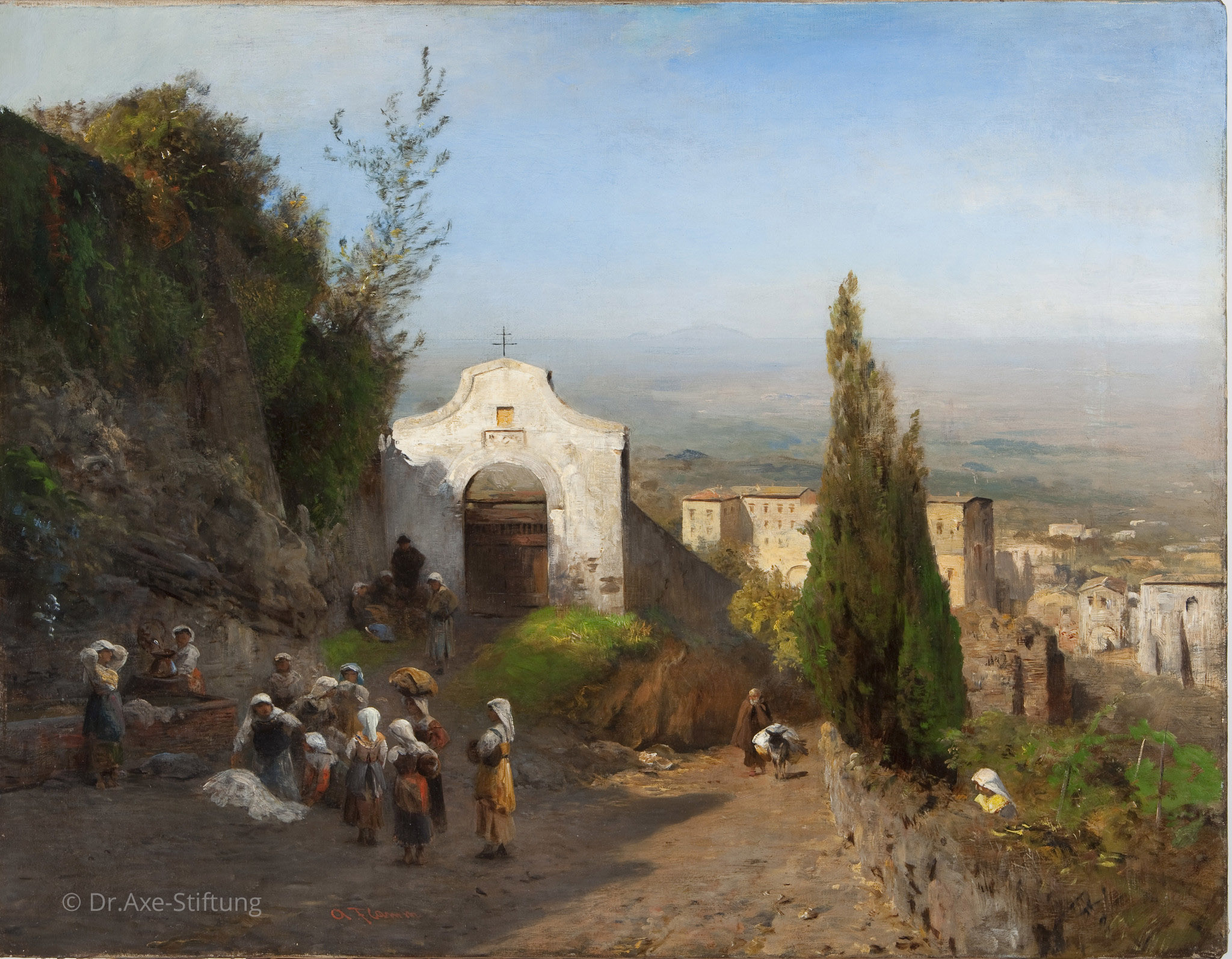 Die Szene am Brunnen gehört zu jenen Darstellungen aus dem italienischen Volksleben, das der Künstler bei wiederholten Aufenthalten in Italien eingehend studiert hatte.