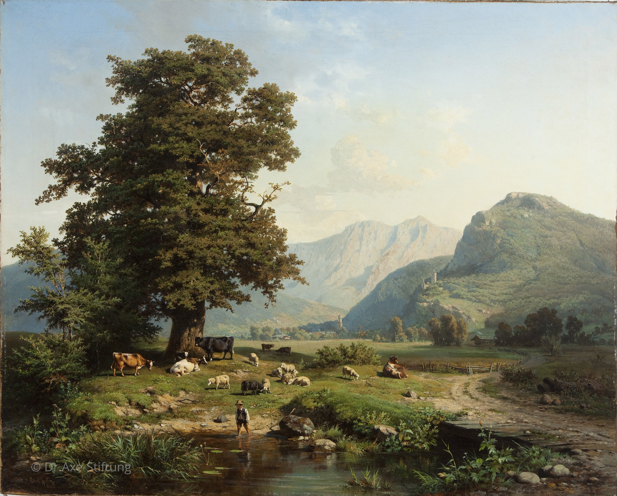 "Sommerliche Voralpenlandschaft mit rastendem Hirtenknaben"